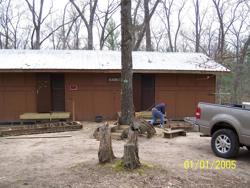 Framing for the new decks on Karnitz Hall (the Girl's Cabin) is complete; waiting for decking and railings to be installed. |